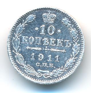 Лицевая сторона — гербовый орел, оборотная —обозначение номинала (10 копеекъ), окруженное венком из лавровой и дубовой ветвей и дата.