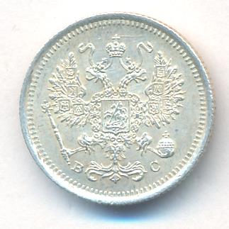 Лицевая сторона — гербовый орел, оборотная —обозначение номинала (10 копеекъ), окруженное венком из лавровой и дубовой ветвей и дата.