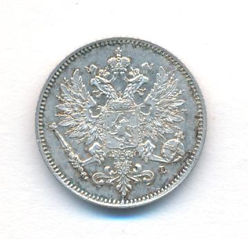 Лицевая сторона — российский двуглавый орел с гербом Великого княжества Финляндского на груди, оборотная — номинал и дата в венке из дубовых листьев. Проба — 750, нормативный вес — 1,27 грамма, гурт рубчатый.