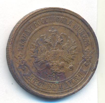 Лицевая сторона — двуглавый орел, надпись МЕДНАЯ РОССIЙСКАЯ МОНЕТА и обозначение номинала (две копейки); оборотная — обозначение номинала (2 копейки) в бусовом ободке и дата. Нормативный вес — 6,55 грамма, гурт рубчатый.