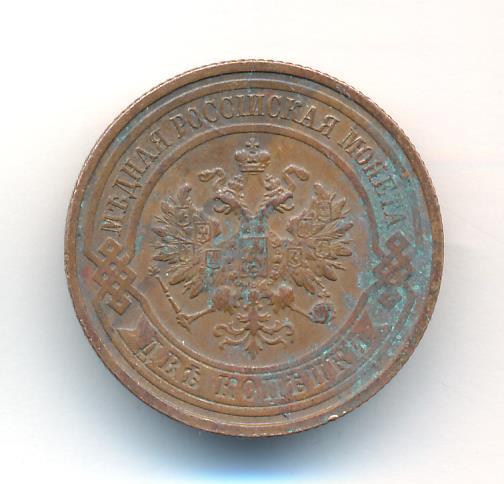 Лицевая сторона — двуглавый орел, надпись МЕДНАЯ РОССIЙСКАЯ МОНЕТА и обозначение номинала (две копейки); оборотная — обозначение номинала (2 копейки) в бусовом ободке и дата. Нормативный вес — 6,55 грамма, гурт рубчатый.