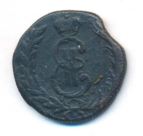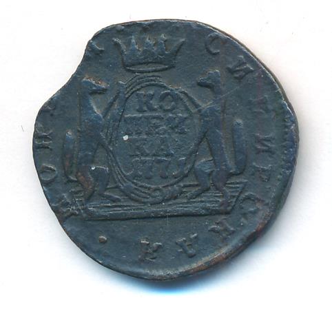 Лицевая сторона - два соболя поддерживают щит с обозначением номинала (копейка) под короной, надпись «СИБИРСКАЯ МОНЕТА». Оборотная — вензель Екатерины II в венке из пальмовой и лавровой ветвей. Гурт — шнур, вес — 6,55 грамма.