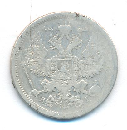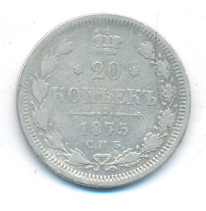 Лицевая сторона — гербовый орел, оборотная —обозначение номинала (20 копеекъ), окруженное венком из лавровой и дубовой ветвей и дата.