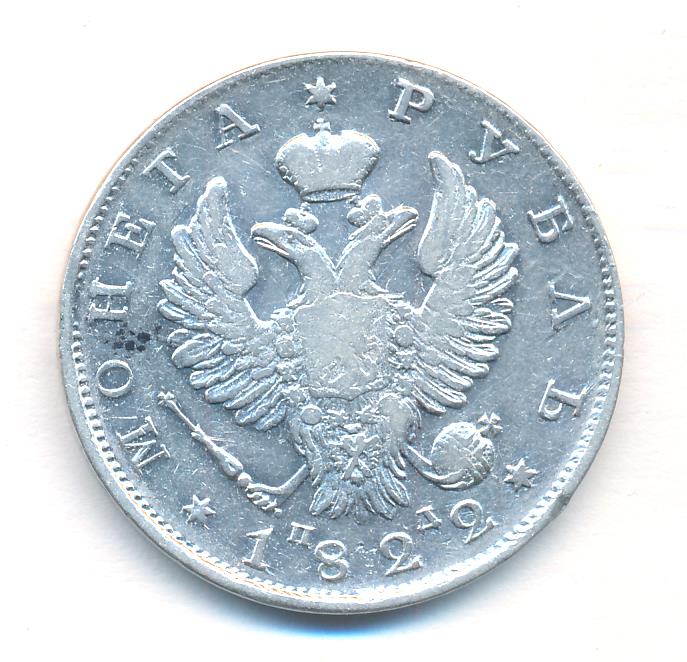 Манифест от 20 июня 1810 года «О новом устройстве монетной системы» устанавливает серебряный рубль законной мерой всех расчетов. Банковые монеты — рубли и полтины — изменяют свой внешний вид. Броская надпись внутри венка на оборотной стороне указывает содержание чистого серебра в монете, а номинал занимает скромное место вокруг орла. Гуртовая надпись сообщает о пробе и лигатурном весе.