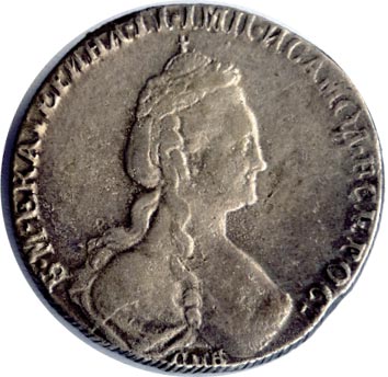 Через 15 лет после дворцового переворота, в результате которого на российский престол взошла Екатерина II, она ощущает, что сравнялась величием с первым российским императором. 22 октября 1776 года генерал-прокурор Вяземский передает два ее портрета с указанием «для рублевой и прочей монеты одежду сделать Императорскую, а на главе, сверх ныне означенного лаврового венка, корону».