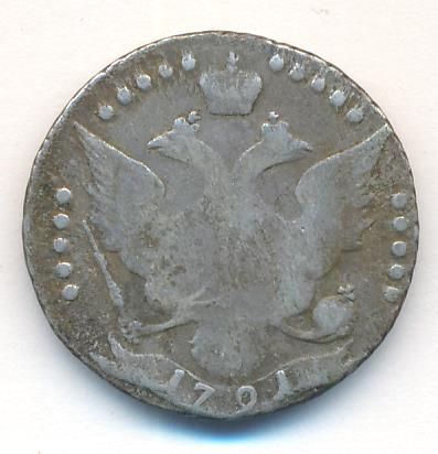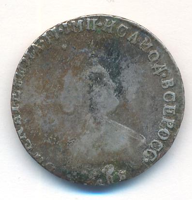 Выделяют два типа - «шея длиннее» и «шея короче». Лицевая сторона — портрет императрицы и надпись «Б М ЕКАТЕРИНА II IМП И САМОД ВСЕРОСС», оборотная — двуглавый орел, обозначение номинала цифрой и счетными точками и дата.