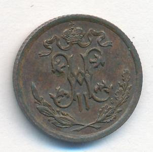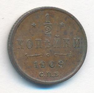 Лицевая сторона — вензель Александра II в венке из лавровой и дубовой ветвей; оборотная — обозначение номинала (1/2 копейки) и дата. Нормативный вес — 1,64 грамма, гурт рубчатый.