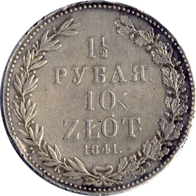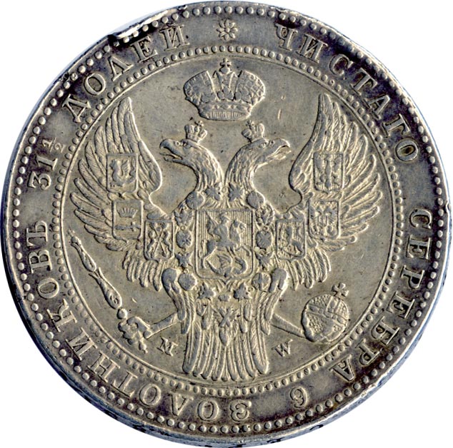 Указом от 27 января 1833 года утверждаются два номинала — полтора рубля/десять злотых и три четверти рубля/пять злотых. Указом от 1 мая 1834 года разрешается чеканка всех номиналов Варшавскому двору. Для организации штемпельного производства из Петербурга 19 июня того же года высылаются рисунки, четыре пары штемпелей и четыре образцовых монеты.
