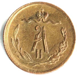 Указом от 21 марта 1867 года Александр II утверждает 50-рублевую стопу для медных монет. Новые монеты получают усложненное оформление, дополнительным отличием от прежних выпусков служит рубчатый гурт (чеканка ведется без предварительного гурчения кружков в неразъемном рубчатом кольце).