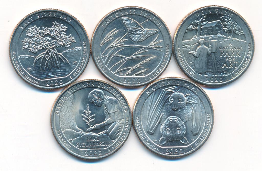 Лот монет США: 1/4 доллара (5шт) 2020P