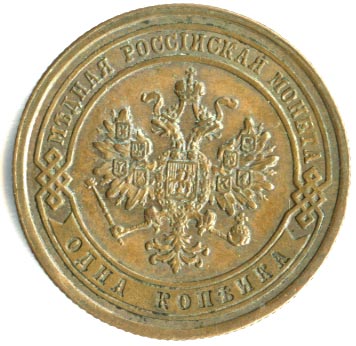 Лицевая сторона — двуглавый орел, надпись МЕДНАЯ РОССIЙСКАЯ МОНЕТА и обозначение номинала (одна копейка); оборотная — обозначение номинала (1 копейка) в бусовом ободке и дата. Нормативный вес — 3,28 грамма, гурт рубчатый.
