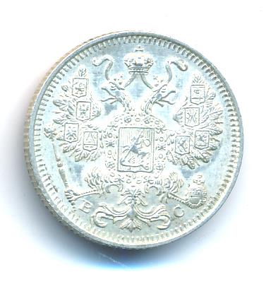 Лицевая сторона — гербовый орел, оборотная —обозначение номинала (15 копеекъ), окруженное венком из лавровой и дубовой ветвей и дата.