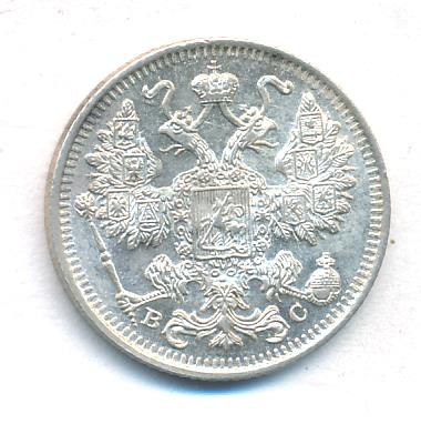 Лицевая сторона — гербовый орел, оборотная —обозначение номинала (15 копеекъ), окруженное венком из лавровой и дубовой ветвей и дата.