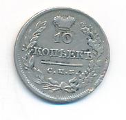 Лицевая сторона - двуглавый орел и дата, оборотная — обозначение номинала (10 копеекъ) в венке из лавровой и дубовой ветвей. Проба до 1813 года — 750, нормативный вес — 2,40 грамма; после 1813 года — проба 868, нормативный вес — 2,07 грамма.