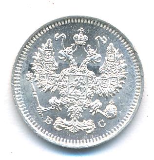 Лицевая сторона — гербовый орел, оборотная —обозначение номинала (10 копеекъ), окруженное венком из лавровой и дубовой ветвей и дата.