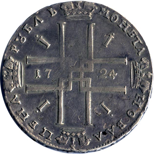 Рубль 1723-1725 годов «В античных доспехах»