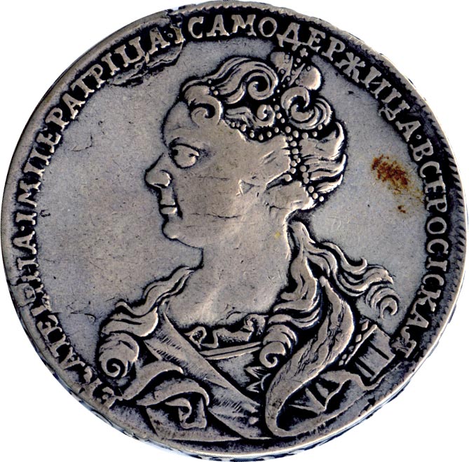 Гурт на монетах Кадашевского двора - «россискоi рубль ея i в (императорского величества) московского двора», гурт на петербургских монетах — узор или шнур. Легенда лицевой стороны - «Екатерина императрица и самодержица всероссийская», оборотной - «Монета новая цена рубль» и дата арабскими цифрами. Проба -729, нормативный вес — 28,44 грамма.