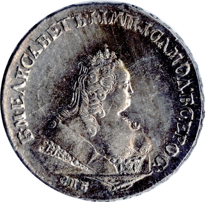 В 1741 году появляется и новый петербургский тип рубля — портрет погрудный, в плаще, без орденского знака (кроме очень редких монет этого года, выполненных штемпелями московского типа 65). Этот тип не меняется до 1754 года. С 1743 года такое же оформление получают петербургские полтины.