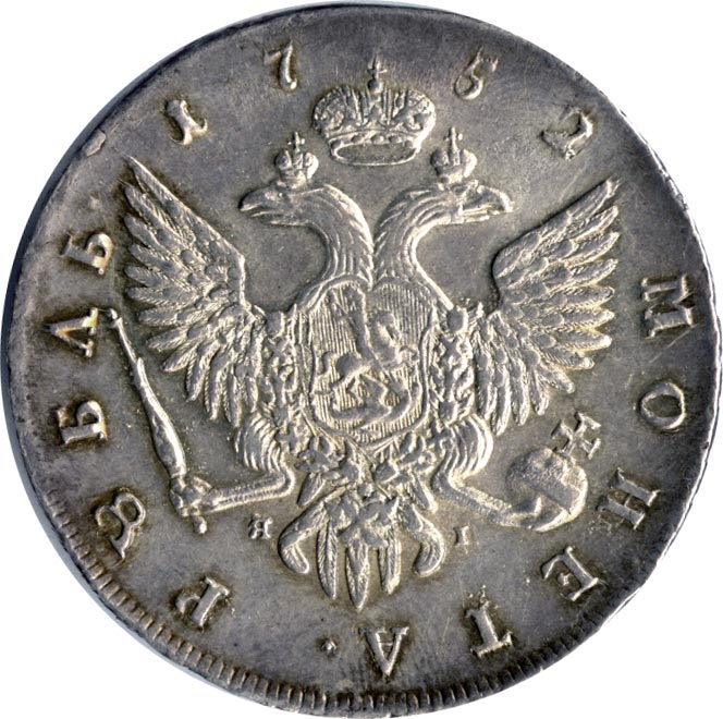 Лицевая сторона — портрет императрицы и надпись «Б М Елисаветъ I IMP I САМОД ВСЕРОС», оборотная — двуглавый орел и надпись «монета рубль» и дата. Проба — 802, нормативный вес — 25,85 грамма. Гурт — надпись «с.петербурхскаго монетнаго двора».