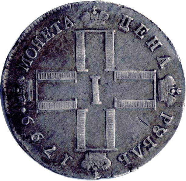 Лицевая сторона - крестообразная монограмма из четырех П и I в центре, надпись «МОНЕТА ЦЕНА РУБЛЬ» и дата, оборотная - надпись «НЕ НАМ, НЕ НАМ, А ИМЯНИ ТВОЕМУ» в картуше. Проба — 868, нормативный вес — 20,73 грамма, гурт — надпись «восемдесятъ третеи съ одною третью пробы».