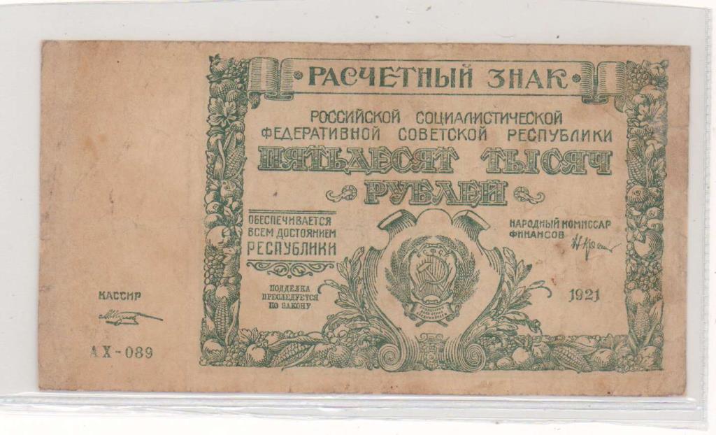 Расчетные знаки РСФСР образца 1921 г.