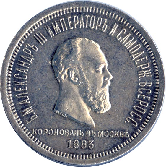 Наследник цесаревич Александр Александрович вступил на престол 2 марта 1881 года, после жестокого убийства его отца. Коронация и миропомазание императора и его супруги были совершены в Успенском соборе Кремля 15 мая 1883 года. Событию был придан политический характер, имеющий целью показать незыблемость самодержавия — в частности, кроме традиционно выпускаемых медалей, монетному двору поручается выпустить памятные рубли с портретом императора.