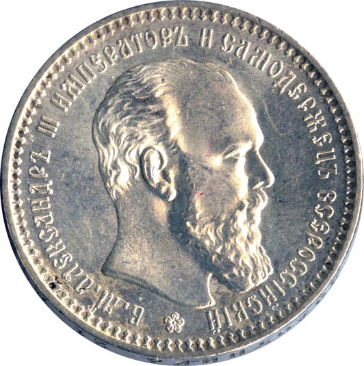 Лицевая сторона — портрет Александра III в круговой надписи «Б.М.АЛЕКСАНДРЪ III ИМПЕРАТОРЪ И САМОДЕРЖЕЦЪ ВСЕРОССIЙСКIЙ», оборотная — двуглавый орел, обозначение номинала (рубль) и дата.