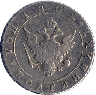 Полуполтинник 1802-1805 годов «Орел в кольце»