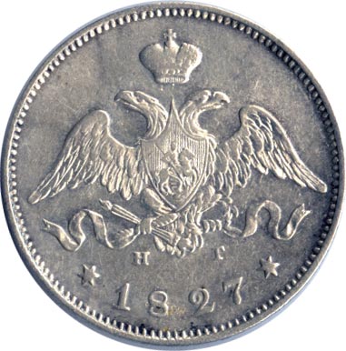 Указом от 18 февраля 1827 года к ряду номиналов добавляется 25 копеек, по той же норме, что и остальные серебряные монеты.