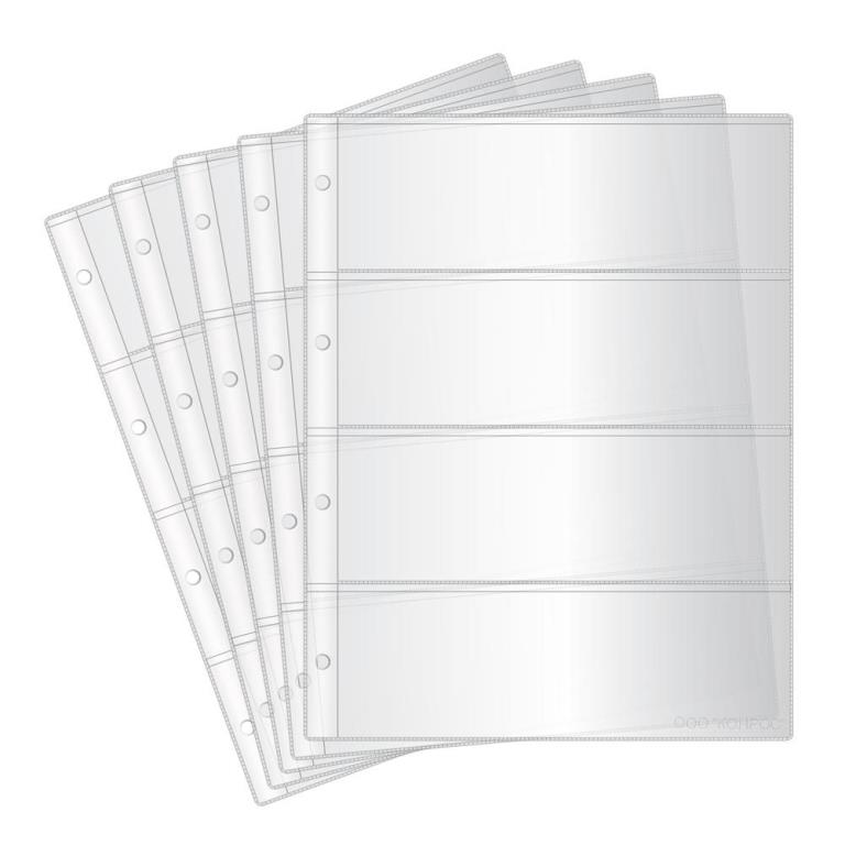Особенности: Новые. Размер листа 245х310 мм, размер ячейки 225х70 мм, материал: ПВХ. Лист системы GRANDE для банкнот. Производство Россия.