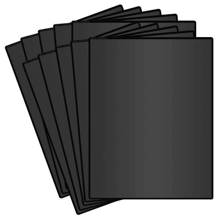 Особенности: Новые. Размер листа 280х215 мм, размер ячейки 265х215 мм, материал: ПВХ. Лист для банкнот из пленки повышенной прозрачности с черным разделителем из пластика. Коллекционный материал виден с одной стороны. Подходит для длительного хранения бон, открыток, конвертов в альбомах.