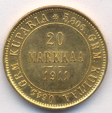 Еще во время русско-шведской войны 1788-1790 годов финские офицеры, недовольные шведским владычеством, составили заговор с целью образования самостоятельного финского государства под российским протекторатом. В результате успехов в русско-шведской войне 1808-1809 годов Финляндия вошла в состав Российской империи в качестве Великого княжества. С этого времени в ней вводится российская денежная система и вытесняется шведская. По ходатайству об уменьшении денежной единицы, слишком крупной для населения, манифестом от 23 марта 1860 года финскому банку разрешено чеканить «особую» монету — марку, разделенную на 100 пенни.