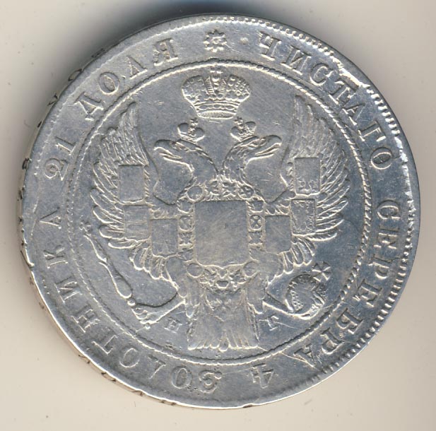 В январе 1830 года Николай I дает министру финансов Е. Ф. Канкрину устное указание «о сделании на золотых и серебряных монетах орла как на платиновых». На новом гербе крылья орла подняты, на них размещены шесть местных гербов — казанский, астраханский, сибирский, польский, херсонесский и финляндский. На груди орла — московский герб, на головах — короны. С 1832 года заодно с орлом изменяются и композиции обеих сторон монет: на лицевой стороне содержание чистого серебра в монете теперь обозначает круговая надпись, слово МОНЕТА на оборотной подчеркивает нарицательную стоимость, отличая полновесное денежное средство от рубля ассигнациями (нужно помнить, что доставшаяся Николаю в наследство от трех прежних правлений масса обесцененных бумажных денег является острой экономической проблемой. Правительство Николая удерживает объем ассигнаций строго на одном уровне, не прибегая к дополнительным эмиссиям; курс рубля ассигнациями колеблется вокруг 35 копеек).