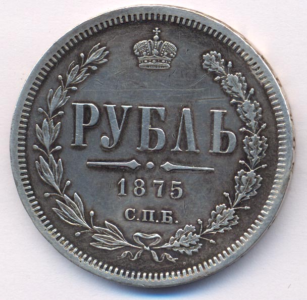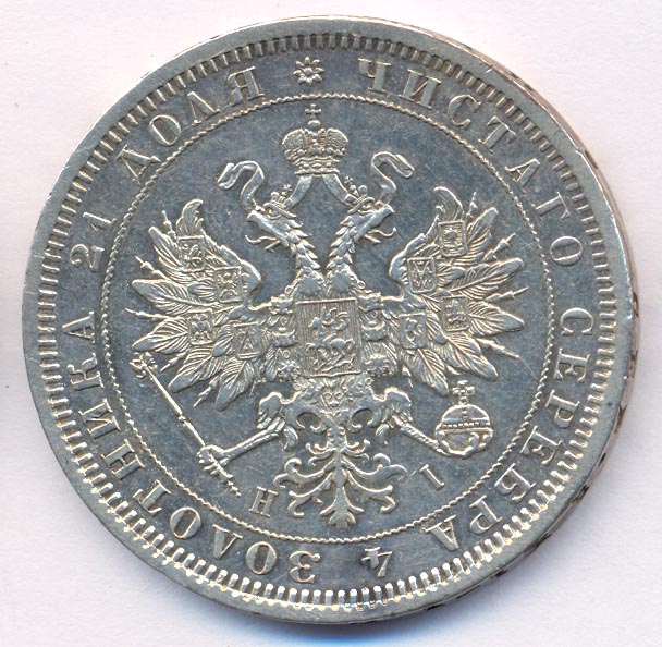 Лицевая сторона — гербовый орел и надпись «ЧИСТОГО СЕРЕБРА 4 ЗОЛОТНИКА 21 ДОЛЯ», оборотная — обозначение номинала «РУБЛЬ», окруженное венком из лавровой и дубовой ветвей и дата.
