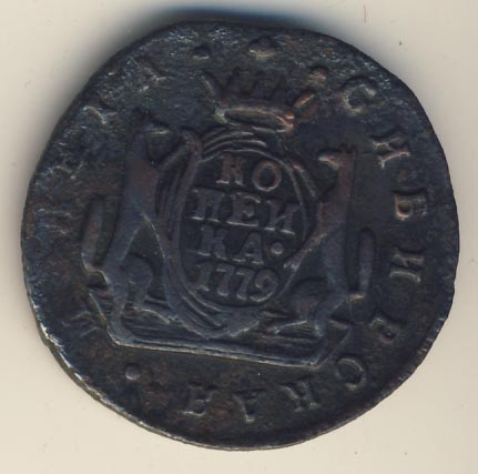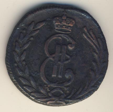Лицевая сторона - два соболя поддерживают щит с обозначением номинала (копейка) под короной, надпись «СИБИРСКАЯ МОНЕТА». Оборотная — вензель Екатерины II в венке из пальмовой и лавровой ветвей. Гурт — шнур, вес — 6,55 грамма.
