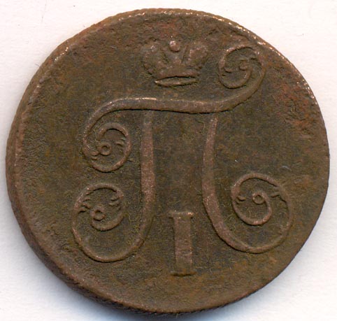Лицевая сторона — вензель Павла I под короной, оборотная — номинал (1 копейка) и дата. Нормативный вес — 10,24 грамма, гурт — шнур.
