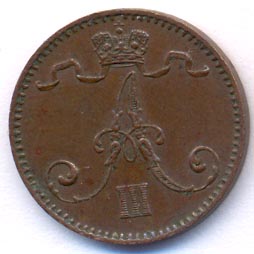 Еще во время русско-шведской войны 1788-1790 годов финские офицеры, недовольные шведским владычеством, составили заговор с целью образования самостоятельного финского государства под российским протекторатом. В результате успехов в русско-шведской войне 1808-1809 годов Финляндия вошла в состав Российской империи в качестве Великого княжества. С этого времени в ней вводится российская денежная система и вытесняется шведская. По ходатайству об уменьшении денежной единицы, слишком крупной для населения, манифестом от 23 марта 1860 года финскому банку разрешено чеканить «особую» монету — марку, разделенную на 100 пенни.