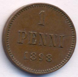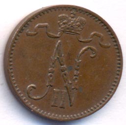 Лицевая сторона — вензель Александра II, оборотная — номинал (1 PENNIA) и дата. Нормативный вес — 1,28 грамма, гурт гладкий.