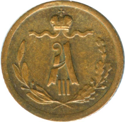 Указом от 21 марта 1867 года Александр II утверждает 50-рублевую стопу для медных монет. Новые монеты получают усложненное оформление, дополнительным отличием от прежних выпусков служит рубчатый гурт (чеканка ведется без предварительного гурчения кружков в неразъемном рубчатом кольце).