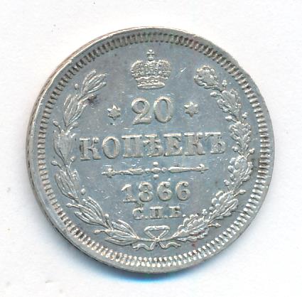 Лицевая сторона — гербовый орел, оборотная —обозначение номинала (20 копеекъ), окруженное венком из лавровой и дубовой ветвей и дата.