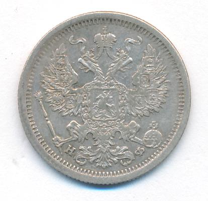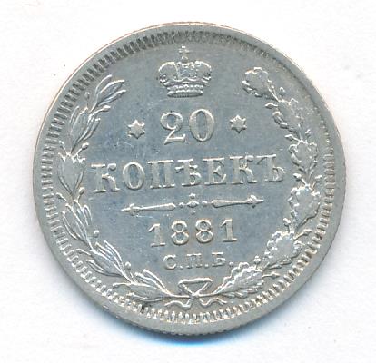 Лицевая сторона — гербовый орел, оборотная —обозначение номинала (20 копеекъ), окруженное венком из лавровой и дубовой ветвей и дата.