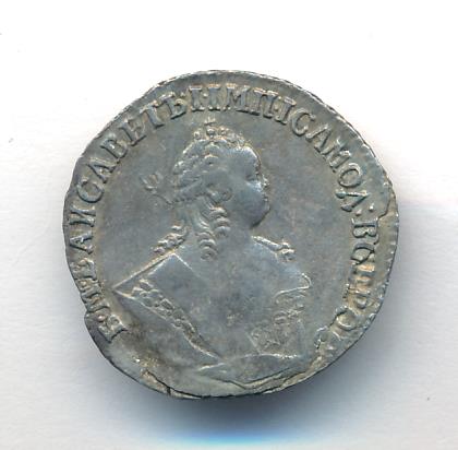 Лицевая сторона — портрет и надпись «Б М Елисаветъ I IMP I САМОД ВСЕРОС», оборотная — обозначение номинала (гривенникъ) и дата. Проба — 750 (с 1746 года - 802), нормативный вес — 2,59 грамма (с 1755 года — 2,42). Гурт — шнур.