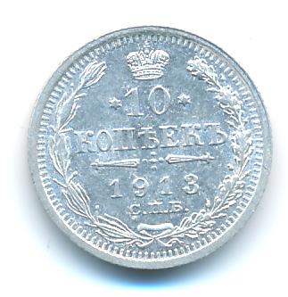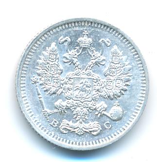 Лицевая сторона — гербовый орел, оборотная —обозначение номинала (10 копеекъ), окруженное венком из лавровой и дубовой ветвей и дата.