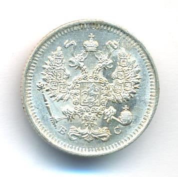 Лицевая сторона — гербовый орел, оборотная —обозначение номинала (10 копеекъ), окруженное венком из лавровой и дубовой ветвей и дата.