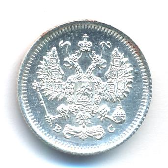 Лицевая сторона — гербовый орел, оборотная —обозначение номинала (10 копеекъ), окруженное венком из лавровой и дубовой ветвей и дата.