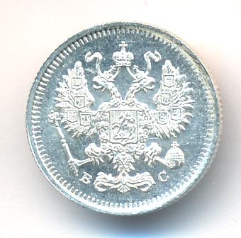 Лицевая сторона — гербовый орел, оборотная —обозначение номинала (10 копеекъ), окруженное венком из лавровой и дубовой ветвей и дата.