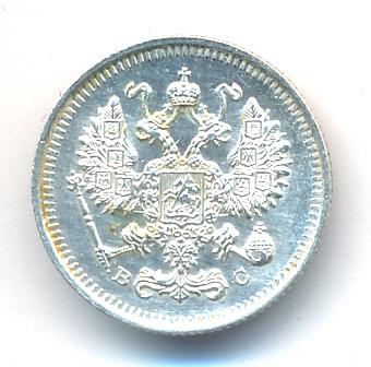 Лицевая сторона — гербовый орел, оборотная —обозначение номинала (10 копеекъ), окруженное венком из лавровой и дубовой ветвей и дата.