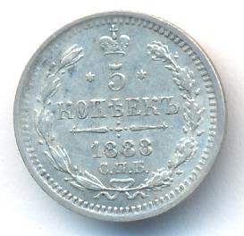 Лицевая сторона — гербовый орел, оборотная —обозначение номинала (5 копеекъ), окруженное венком из лавровой и дубовой ветвей и дата.