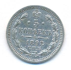 Лицевая сторона — гербовый орел, оборотная —обозначение номинала (5 копеекъ), окруженное венком из лавровой и дубовой ветвей и дата.