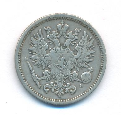 Лицевая сторона — российский двуглавый орел с гербом Великого княжества Финляндского на груди, оборотная — номинал и дата в венке из дубовых листьев. Проба — 750, нормативный вес — 2,55 грамма, гурт рубчатый.